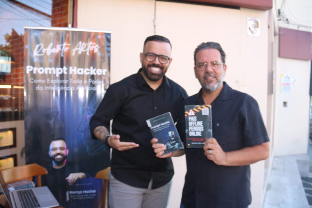 O morador de Arujá e antigo comerciante do Parque Rodrigo Barreto, Roberto Feliz Vieira, lançou no sábado (28) o livro “Prompt Hacker – Como Explorar Todo o Poder da Inteligência Artificial”. O evento aconteceu na cafeteria Cheirinho Bão, no Centro, e atraiu cerca de cem pessoas que passaram pelo local para adquirir um exemplar autografado e cumprimentar o autor, muito conhecido e estimado na comunidade.
